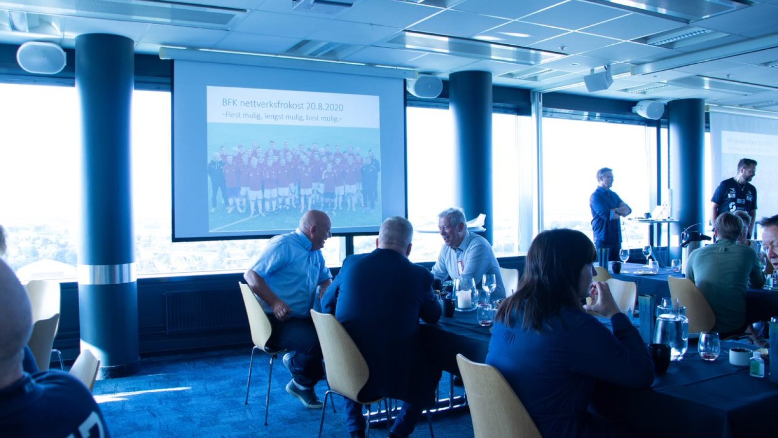 Nettverksfrokost med 60 personer i nydelige jærske omgivelser, på toppen av Høghuset på Bryne. Jærsikten bød på annerledes og veldig god frokost.